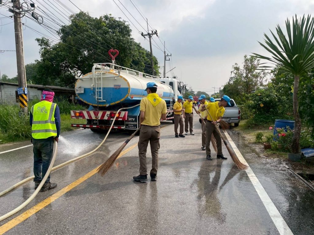 วันพฤหัสบดีที่ 27 มี.ค.2568 เวลา 09.30 น. ภายใต้การอำนวนการของ พ.ต.อ.ปพนพัชร์ ใบยา ผกก.สภ.คลองกิ่ว มอบหมายให้ พ.ต.ท.นพรุจ ณ รังษี รอง ผกก.ป.สภ.คลองกิ่ว พร้อมด้วยข้าราชการตำรวจ จิตอาสา รวม 6 นาย ร่วมกิจกรรมจิตอาสาพัฒนาเนื่องในวันที่ระลึกพระบาทสมเด็จพระนั่งเกล้าเจ้าอยู่หัว โดยมีกิจกรรมทำความสะอาดฉีดล้างถนน กวาดถนน และเก็บขยะ ณ ตลาดหนองน้ำเขียว ตำบลคลองกิ่ว อำเภอบ้านบึง จังหวัดชลบุรี