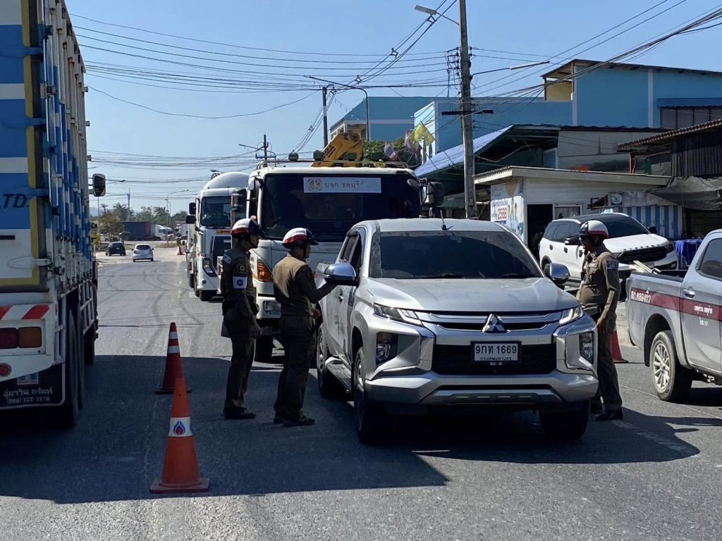 ตั้งจุดตรวจ ว.43 ป้องกันเหตุอาชญากรรมและกวดขันวินัยจราจรบริเวณ ถนน หัวกุญแจ – หนองชาก ม.1 ต.คลองกิ่ว อ.คลองกิ่ว จ.ชลบุรี
