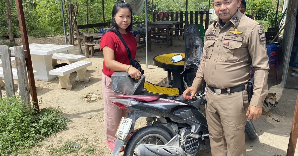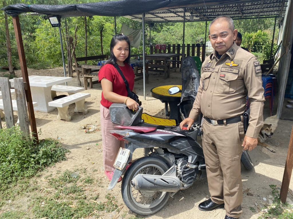 พ.ต.ท.จำลอง จินพละ สวป.สภ.คลองกิ่ว พร้อมสายตรวจรถยนต์ , สายตรวจจราจร ให้ความช่วยเหลือรถจักรยานยนต์ ของประชาชนน้ำมันหมด บริเวณริมถนนสายหัวกุญแจ-มาบลำบิด ม.7 ต.คลองกิ่ว อ.บ้านบึง จ.ชลบุรี จนสามารถเดินทางต่อไปได้